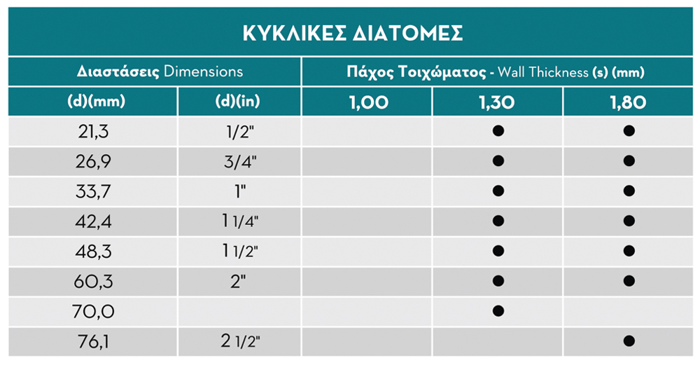 Διατομή κυκλική: 21,3-76,1mm
