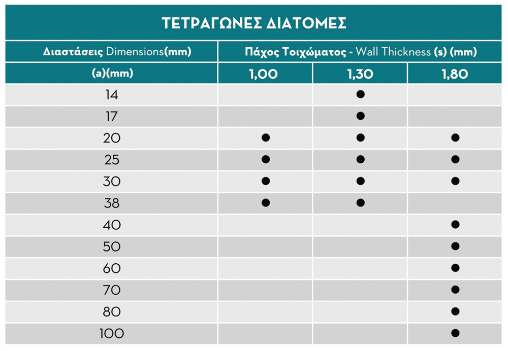 Διατομή τετράγωνη: 14x14 - 100x100mm